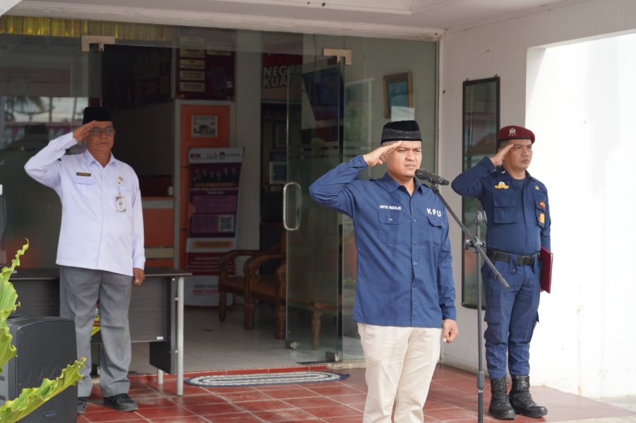Tanjung Pati, kab-limapuluhkota.kpu.go.id - KPU Kabupaten Lima Puluh Kota melaksanakan Apel Pagi Rutin, Senin (27/10/2025) bertempat di Halaman Kantor KPU Kabupaten Lima Puluh Kota. Apel diikuti oleh seluruh jajaran Sekretariat, Kasubbag, pejabat fungsional, dan staf KPU Kabupaten Lima Puluh Kota. Apel pagi dipimpin oleh Ketua KPU Kabupaten Lima Puluh Kota, Bapak Okto Rizaldi Sementara itu, Komandan Upacara dipercayakan kepada Kasubbag Keuangan Umum dan Logistik Ade Rio Saputra.