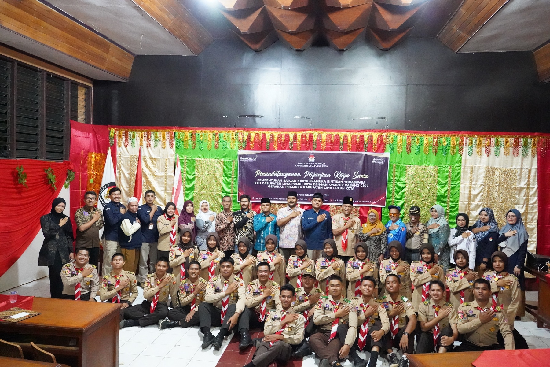 Tanjung Pati, kab-limapuluhkota.kpu.go.id — Komisi Pemilihan Umum (KPU) Kabupaten Lima Puluh Kota bersama Kwartir Cabang (Kwarcab) 0307 Gerakan Pramuka Kabupaten Lima Puluh Kota resmi menjalin kerja sama dalam upaya memperkuat pendidikan pemilih bagi generasi muda. Kegiatan yang dirangkai dengan Penandatanganan Perjanjian Kerja Sama (PKS) tersebut berlangsung pada Sabtu (29/11/2025) di Sekretariat Kwarcab 0307 Gerakan Pramuka Kabupaten Lima Puluh Kota.