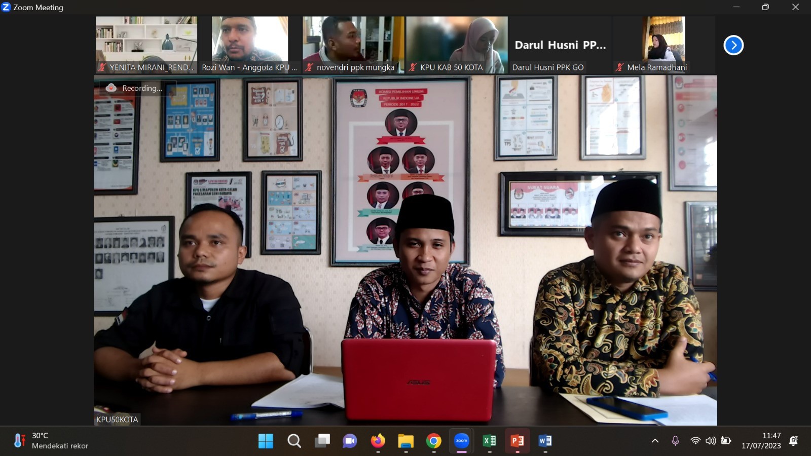 Tanjung Pati, kpu.go.id − Daftar Pemilih Tetap (DPT) telah ditetapkan di tingkat Kabupaten Lima Puluh Kota pada tanggal 21 Juni 2023. Seperti estafet lari, Tahapan Daftar Pemilih Tambahan (DPTb) pun telah dimulai untuk menyamakan pemahaman dengan PPK dan PPS se-Kabupaten Lima Puluh Kota. Oleh karena itu, KPU Kabupaten Lima Puluh Kota menggelar Rapat Kerja terkait Penyusunan Daftar Pemilih Tambahan, Sabtu (17/6/ 2023) secara daring melalui aplikasi zoom meeting.