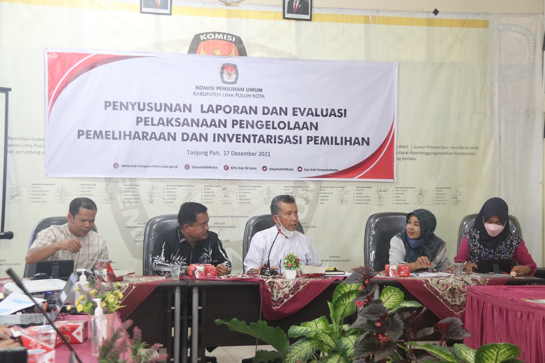 kab-limapuluhkota.kpu.go.id - Tanjung Pati, Dalam rangka menata pengelolaan kearsipan dan juga inventarisasi dokumen pemilih, KPU Kabupaten Lima Puluh Kota membuat kegiatan Penyusunan Laporan dan Evaluasi Pelaksanaan Pengelolaan, Pemiliharaan dan Inventarisasi Dokumen Pemilihan bersama Dinas Perpustakaan dan Kearsipan Kabupaten Lima Puluh Kota, Jum'at 17 Desember 2021 di Aula Kantor KPU Kabupaten Lima Puluh Kota.