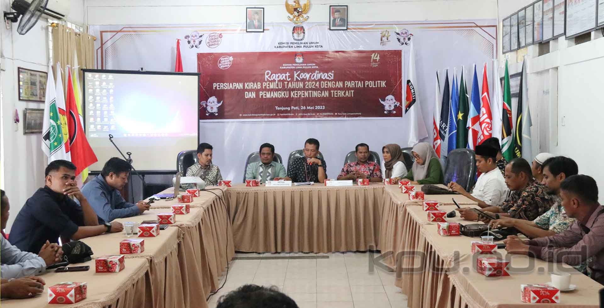Tanjung Pati, kab-limapuluhkota.kpu.go.id – Jelang Tim Kirab I (titik start Aceh) tiba di Kabupaten Lima Puluh Kota pada tangggal 11 Juni 2023, KPU Kabupaten Lima Puluh Kota menggelar Rapat Kerja bersama PPK dan Rapat Koordinasi dengan Partai Politik dan Pemangku Kepentingan atas Pelaksanaan Kirab Pemilu 2024, di Kabupaten Lima Puluh Kota, di Aula Kantor KPU Kabupaten Lima Puluh Kota, Jumat (26/5/2023).