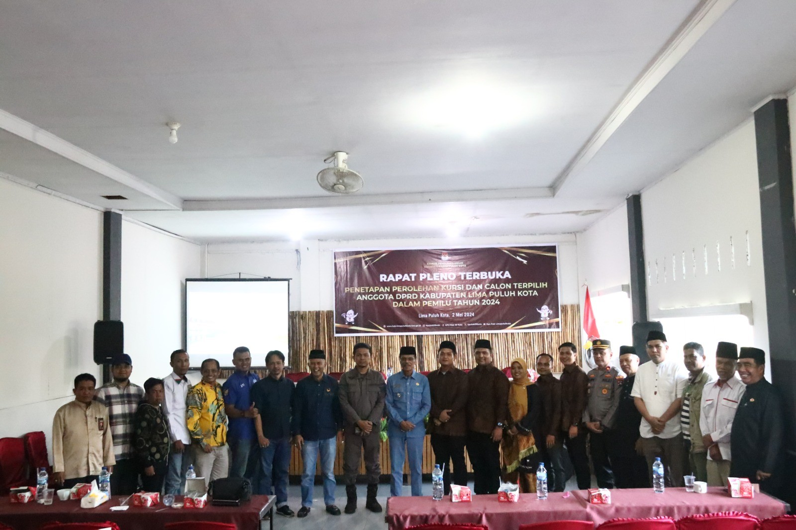 Dalam Rapat Pleno dipimpin oleh Ketua KPU Kabupaten Lima Puluh Kota Okto Rizaldi didampingi Anggota KPU dan Sekretaris serta di hadiri Bupati, DPRD, Polres 50 Kota, Polres Payakumbuh, Bawaslu Kabupaten Lima Puluh Kota dan Partai Politik.