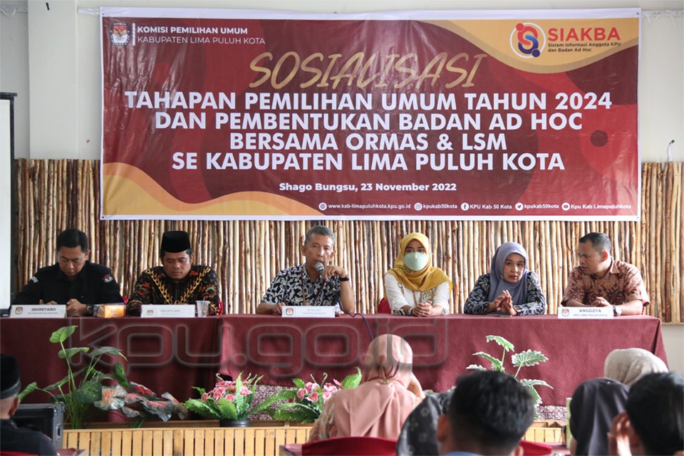 Hal ini disampaikan Ketua KPU Limapuluh Kota, Masnijon saat Sosialisasi Tahapan Pemilu 2024 dan Pembentukan Badan Ad Hoc bersama Ormas dan LSM di Shago Bungsu, Lubuak Batingkok, Kecamatan Harau, Rabu (23/11/2022).