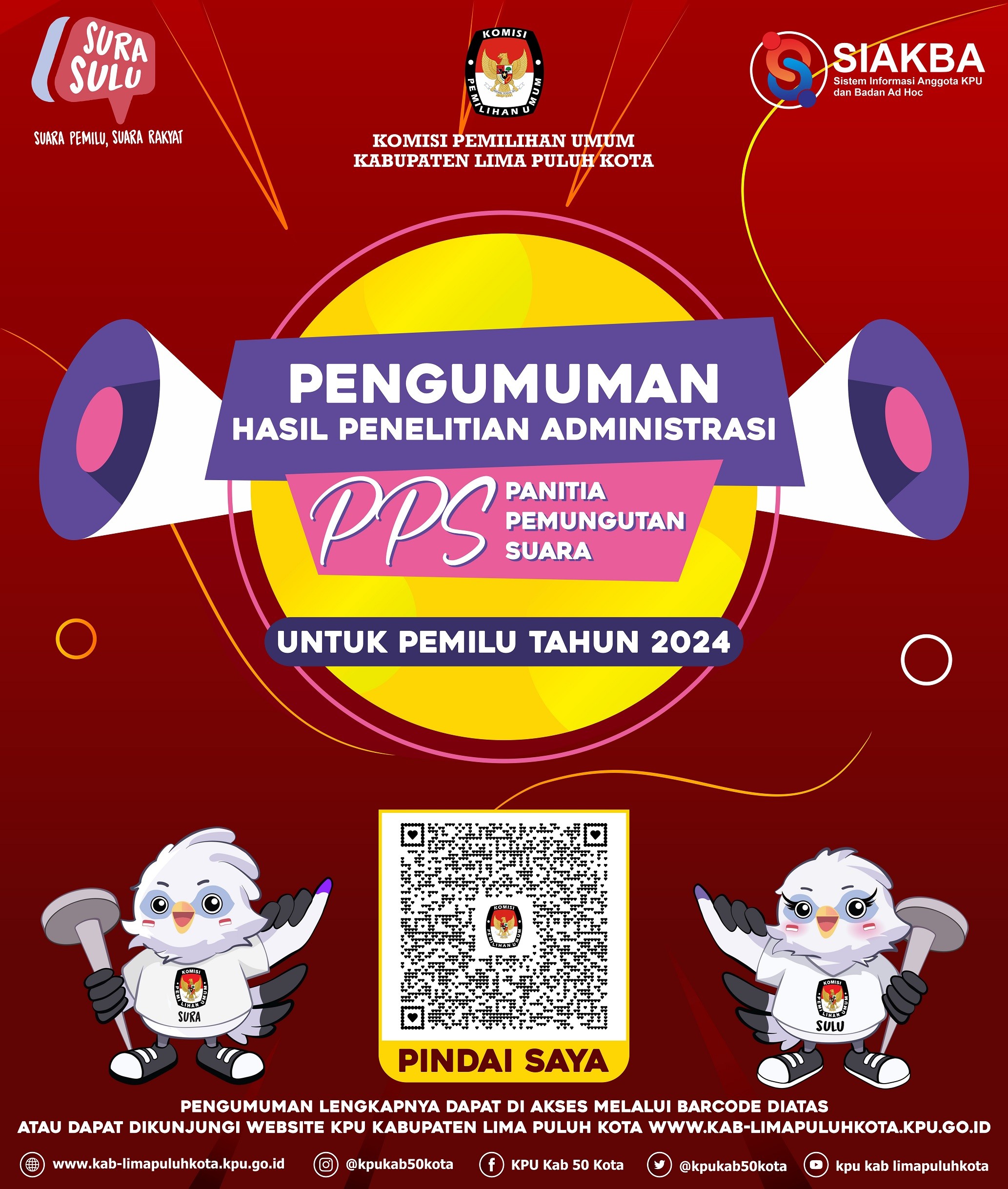Berdasarkan Berita Acara Rapat Pleno KPU Kabupaten Lima Puluh Kota Nomor: 2/PP.04.1-BA/1307/2023 tanggal 6 Januari 2023 tentang Rapat Pleno Penetapan Hasil Penelitian Administrasi Panitia Pemungutan Suara Pemilu Tahun 2024.
