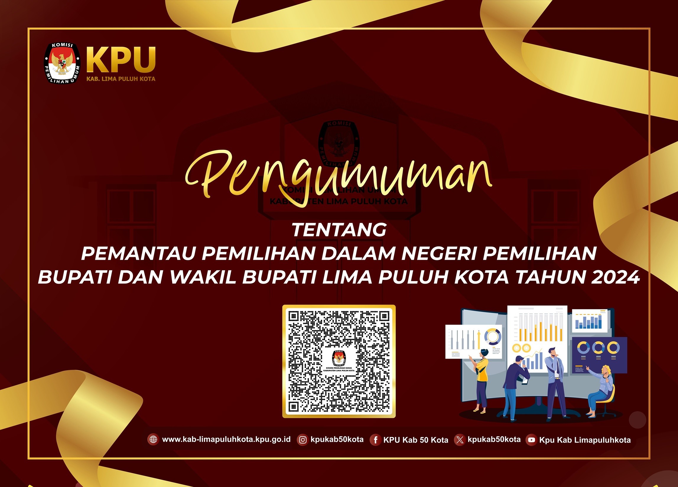 PENGUMUMAN PEMANTAU PEMILIHAN DALAM NEGERI PEMILIHAN BUPATI DAN WAKIL BUPATI LIMA PULUH KOTA TAHUN 2024 Senin, 18 Maret 2024 14:00 248 Pengumuman Lengkap unduh DISINI Formulir Pendaftaran unduh DISINI Bagikan: Dilihat 248 Kali.