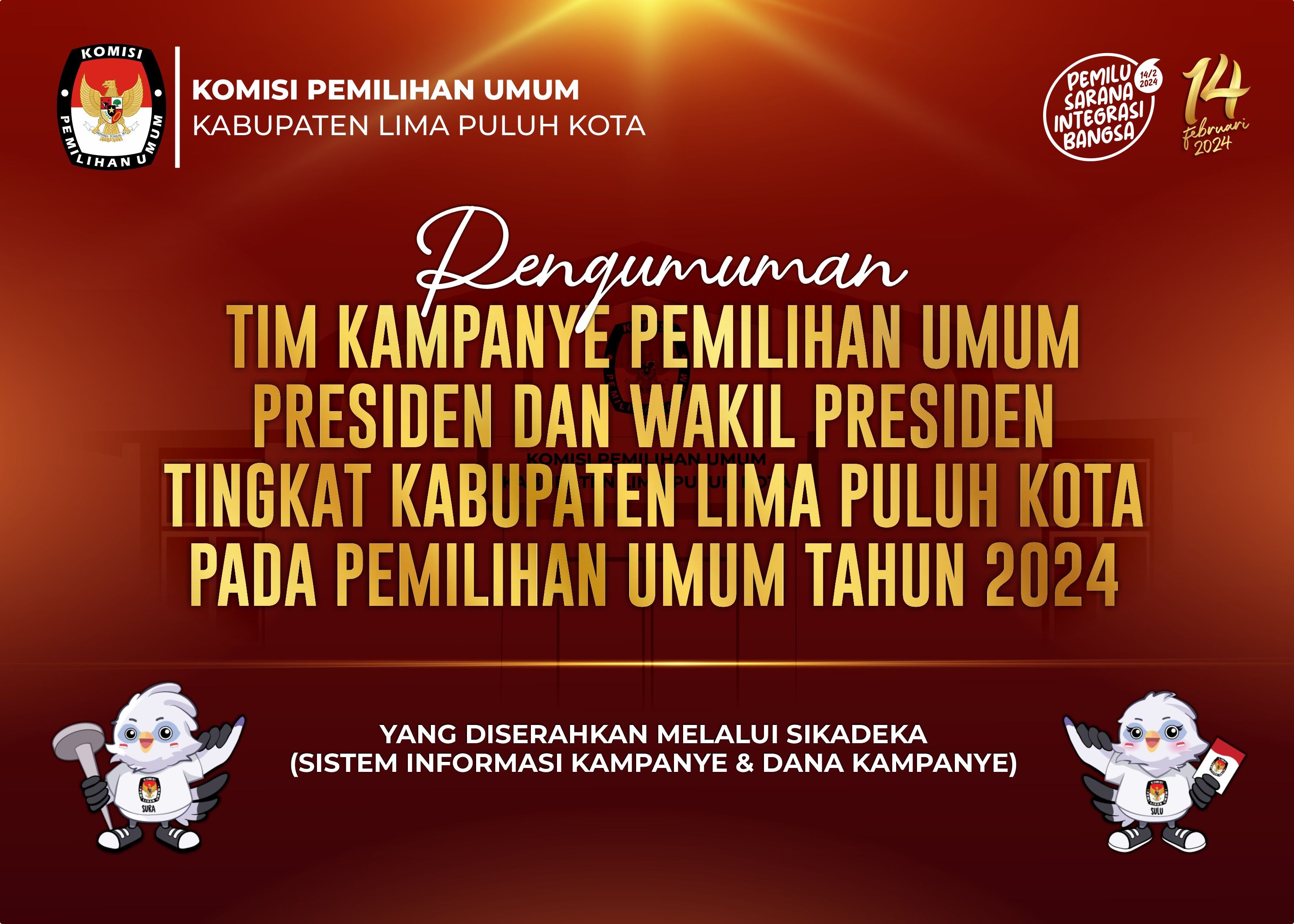 PENGUMUMAN TIM KAMPANYE PEMILIHAN UMUM PRESIDEN DAN WAKIL PRESIDEN TINGKAT KABUPATEN LIMA PULUH KOTA PADA PEMILU 2024