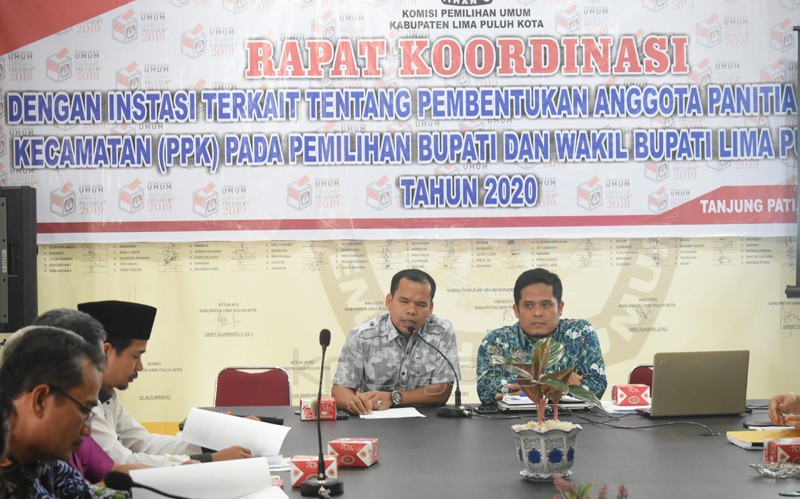 Tanjung Pati – Dua hari pasca diinformasikannya proses pendaftaran Panitia Pemilihan Kecamatan (PPK) Pemilihan 2020, Komisi Pemilihan Umum (KPU) Kabupaten Lima Puluh Kota menggelar Rapat Koordinasi (Rakor) bersama pihak terkait (stakeholder), Kamis (16/1/2020).