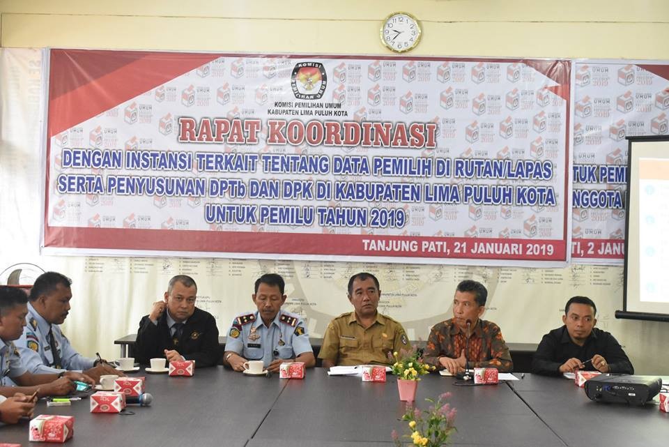 Rapat dipimpin Ketua KPU Lima Puluh Kota, Masnijon yang menjelaskan tentang Daftar Pemilih Tambahan (DPTb) serta Daftar Pemilih Khusus (DPK). Sementara Anggota KPU Lima Puluh Kota Divisi Program Data dan Informasi, Eka Ledyana menyinggung jumlah penghuni rutan/lapas yang terdapat di Kecamatan Harau dan Kecamatan Suliki. Serta untuk menentukan berapa TPS lagi yang harus disiapkan di kedua lokasi tersebut.
