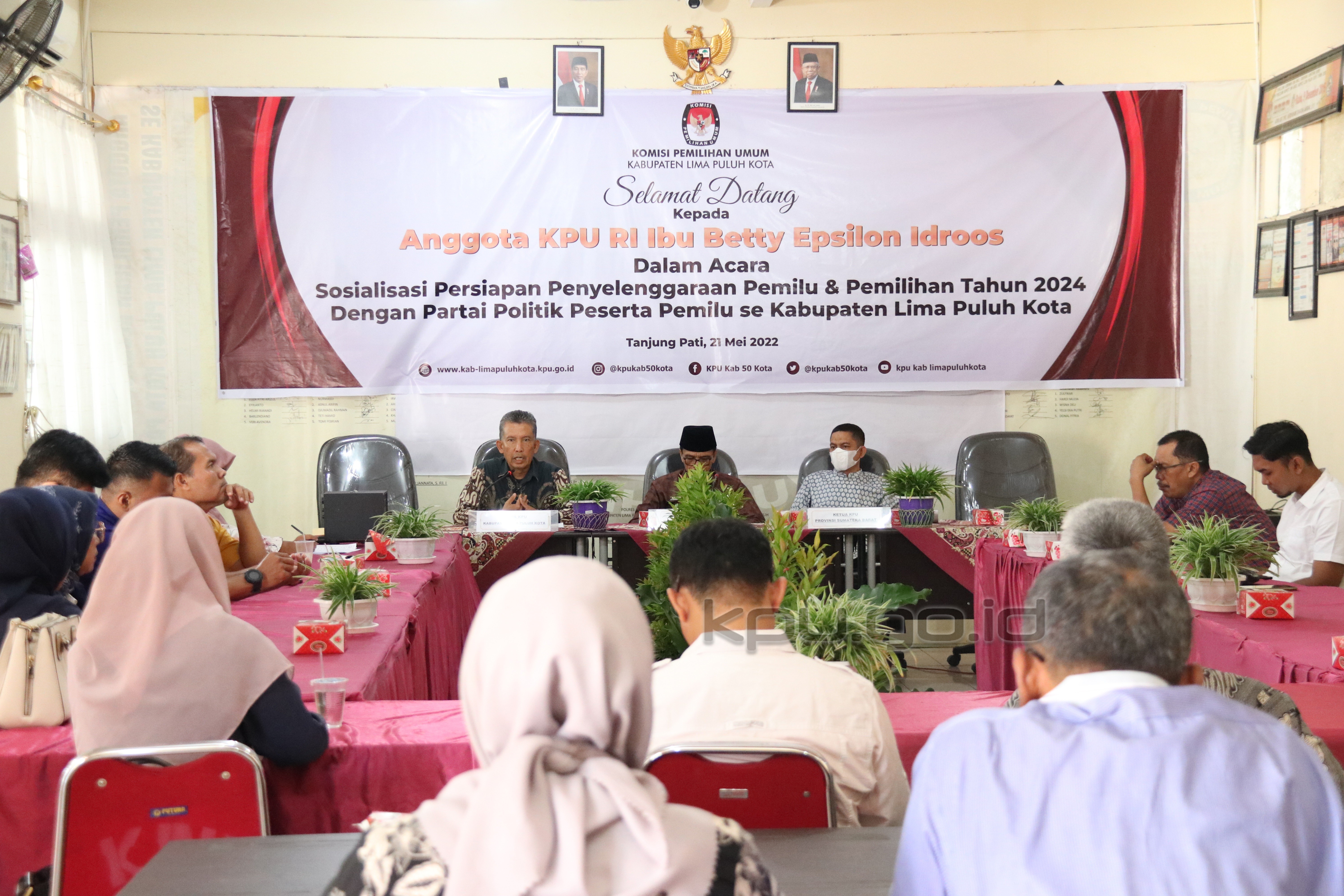 Tanjung Pati, kab-limapuluhkota.kpu.go.id – Guna memberikan pemahaman yang baik kepada masyarakat dan pemangku kepentingan, Komisi Pemilihan Umum (KPU) Kabupaten Lima Puluh Kota menggelar Sosialisasi Persiapan Penyelenggaraan Pemilu dan Pemilihan Tahun 2024 di Aula Kantor KPU Kabupaten Lima Puluh Kota, Sabtu (21/5/2022).