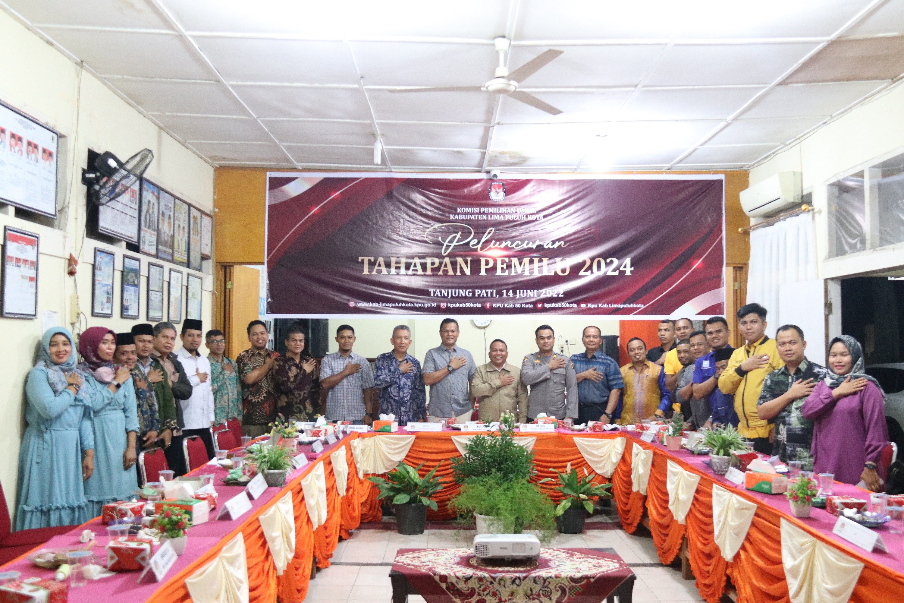Tanjung Pati, Kab-limapuluhkota.kpu.go.id – 14 Juni 2022 adalah hari pertama dalam tahapan pemilu tahun 2024 dan bertepatan dengan 20 bulan menjelang pemungutan suara 14 Februari 2024. KPU RI mengawali tahapan dengan peluncuran Tahapan Pemilu 2024 yang dilaksanakan di kantor KPU Republik Indonesia dan diikuti oleh seluruh ketua dan anggota KPU Provinsi, ketua dan anggota KPU/KIP Kabupaten/Kota beserta seluruh Sekretariat KPU seluruh Indonesia.