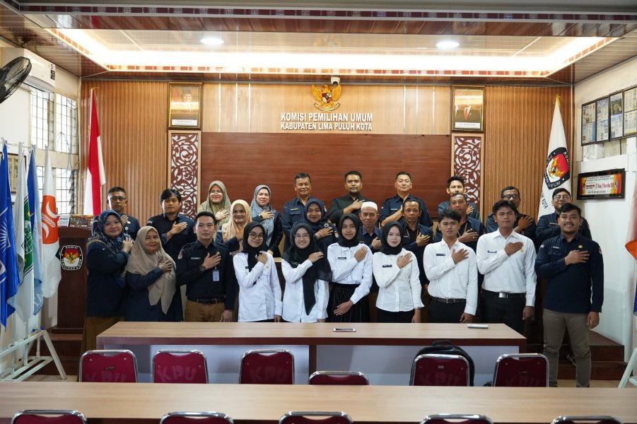 Dalam sambutan penerimaan, Sekretaris KPU Kabupaten Lima Puluh Kota Indrawarman menyampaikan selamat kepada jajaran CPNS serta mengingatkan kembali untuk memahami aturan yang berlaku atas kerjanya di KPU dan peraturan perundang-undangan dan mengembangkan kompetensi sebagai ASN.